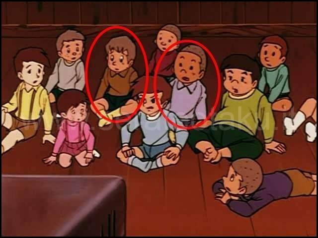 bambini vicino a Ruriko cambiano di posto in varie scene. In una